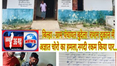 बिल्हा : ग्राम पंचायत बुदेला राशन दुकान में अज्ञात चोरो का हमला,नगदी रकम किया पार… ? Khabar 36 Garh is News bilaspur