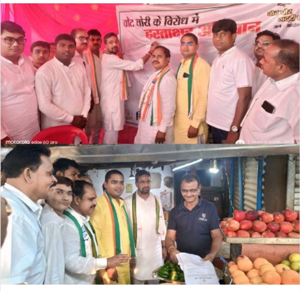 नवाडीह चौक में कांग्रेस का ‘वोट चोर गद्दी छोड़ो’ हस्ताक्षर अभियान