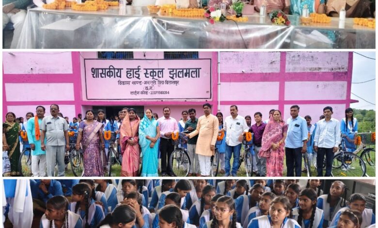ख़बर 36 गढ़ न्यूज़ सीपत – शासकीय उच्चतर माध्यमिक विद्यालय झलमला में सरस्वती निशुल्क साइकिल योजना तहत कक्षा नवमी के नव प्रवेशी 24 छात्राओं को साइकिल प्रदान किया गया।कार्यक्रम में भाजपा सीपत मंडल अध्यक्ष दीपक शर्मा, सरस्वती सोनवानी अध्यक्ष जनपद पंचायत मस्तूरी, भाजपा बिलासपुर ग्रामीण जिला उपाध्यक्ष श्रीमती नागेश्वरी साहू, मंडल उपाध्यक्ष अभिलेश यादव, मंडल महामंत्री सतीश पाटनवार, मंडल कोषाध्यक्ष नागेश्वर सिंह ठाकुर, जनपद पंचायत सदस्य श्रीमती उषा केवट, महिला मोर्चा के अध्यक्ष श्रीमती कल्याणी साहू, ग्राम सरपंच धनलाल साहू, कुलेश्वर पाटनवार, तिरूपति पाटनवार, राजेश साहू ,श्रीमती राजकुमारी कृष्णा साहू ,बतौर अतिथि मंच पर मौजूद रहे।कार्यक्रम को संबोधित करते हुए मंडल अध्यक्ष दीपक शर्मा ने वर्तमान छात्र छात्रा को देश का भविष्य बताते हुए शिक्षा को मूल आधार मानकर अपना सर्वांगीण विकास करते हुए स्वामी विवेकानंद जी को अपना आदर्श मानकर राष्ट्रहित में योगदान देने की बात कहते हुए 2004 में तत्कालीन मुख्यमंत्री डॉ रमन सिंह की छात्राओं की प्रति संवेदनशीलता का परिणाम रहा की सरस्वती निशुल्क साइकिल योजना की शुरुआत की गई थी जिससे की छात्रा समूह का पढ़ाई में कोई बाधा उत्पन्न ना हो सके जिसे वर्तमान की विष्णुदेव सरकार भी भली-भांति संचालित कर रही है। जनपद अध्यक्ष सरस्वती सोनवानी ने छात्र-छात्राओं को निशुल्क साइकिल अपने पर बधाई देते हुए उनके उज्जवल भविष्य की कामना की। प्रभारी प्राचार्य श्रीमती संध्या सारथी ने स्कूल के संबंध में प्रस्तावना रख स्वागत उद्बोधन किया मंच संचालन एवं आभार व्याख्याता शिक्षक मेवालाल कुर्रे ने किया