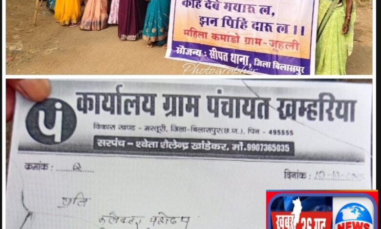 खम्हरियां सोठी जुहली उडागी की महिलाओं ने भरी हुंकार ,एक स्वर में कहा अवैध शराब बिक्री बंद हो,सैकड़ों ग्रामीण महिलाओं ने ली नशामुक्ति की शपथ khabar 36 Garh news sipat ntpc bilaspur
