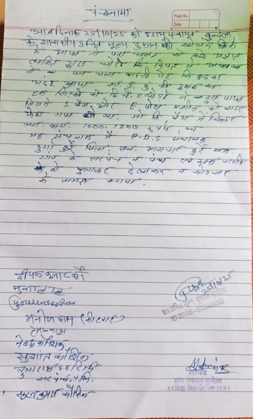 बिल्हा विकासखंड के ग्राम पंचायत बुदेला  राशन दुकान में,अज्ञात चोरो ने बोला धावा नगदी रकम किया पार…