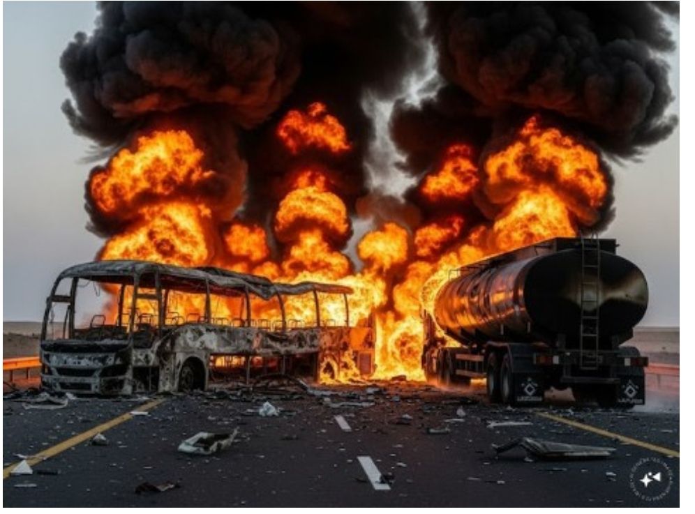 हादसा भारतीय समयानुसार लगभग 1.30 बजे तड़के हुआ. टक्कर के बाद बस में अचानक भीषण आग लग गई