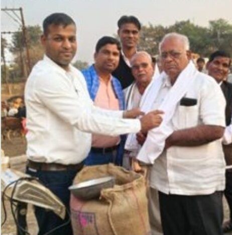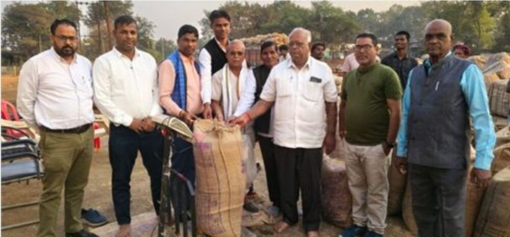 सीपत धान खरीदी केंद्र में समर्थन मूल्य पर खरीदी शुरू , तहसीलदार ने किया कृषक तामेश्वर का गमछा पहनाकर सम्मान