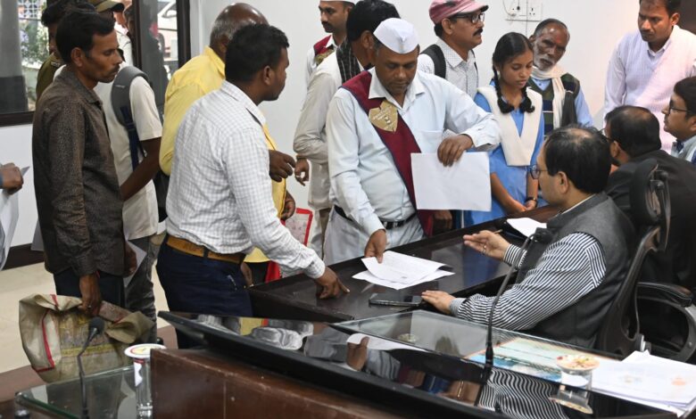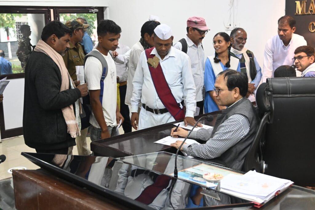 ख़बर 36 गढ़ न्यूज़ बिलासपुर, 25 नवम्बर 2025/ कलेक्टर श्री संजय अग्रवाल ने साप्ताहिक जनदर्शन में आज दूर-दराज से पहुंचे ग्रामीणों की फरियाद सुनी। उन्होंने एक-एक कर प्रत्येक व्यक्ति से मुलाकात कर उनका आवेदन लिया और आवश्यक कार्रवाई के लिए अधिकारियों को निर्देशित किया। लोगों ने जनदर्शन में व्यक्तिगत एवं सामुदायिक हित से जुड़े विषयों को लेकर जिला प्रशासन का ध्यान आकृष्ट करते हुए आवेदन दिया। जनदर्शन में आज लगभग 50 आवेदन प्राप्त हुए। नगर निगम कमिश्नर अमित कुमार और सीईओ जिला पंचायत श्री संदीप अग्रवाल ने लोगों की समस्याओं को सुना।