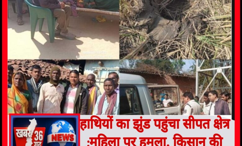 हाथियों का झुंड पहुंचा सीपत क्षेत्र ;महिला पर हमला. किसान की फसल चौपट वन विभाग सक्रिय ? Khabar 36 Garh is News bilaspur