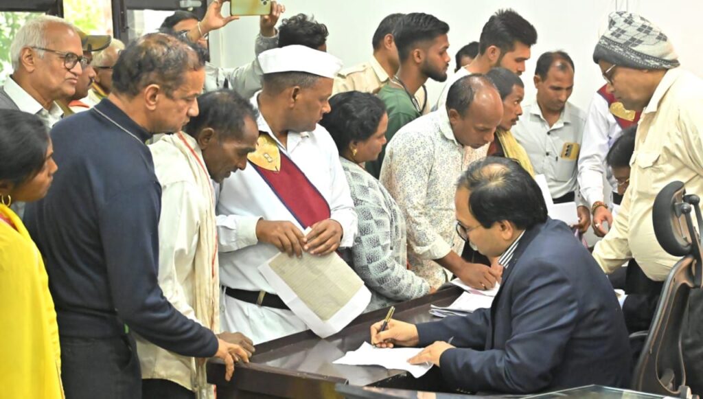 ख़बर 36 गढ़ न्यूज़ बिलासपुर, 23 दिसम्बर 2025/ कलेक्टर श्री संजय अग्रवाल ने साप्ताहिक जनदर्शन में आज दूर-दराज से पहुंचे ग्रामीणों की फरियाद सुनी। उन्होंने एक-एक कर प्रत्येक व्यक्ति से मुलाकात कर उनका आवेदन लिया और आवश्यक कार्रवाई के लिए अधिकारियों को निर्देशित किया। लोगों ने जनदर्शन में व्यक्तिगत एवं सामुदायिक हित से जुड़े विषयों को लेकर जिला प्रशासन का ध्यान आकृष्ट करते हुए आवेदन दिया। नगर निगम कमिश्नर श्री प्रकाश कुमार सर्वे और एडीएम श्री शिवकुमार बनर्जी ने लोगों की समस्याओं को सुना।