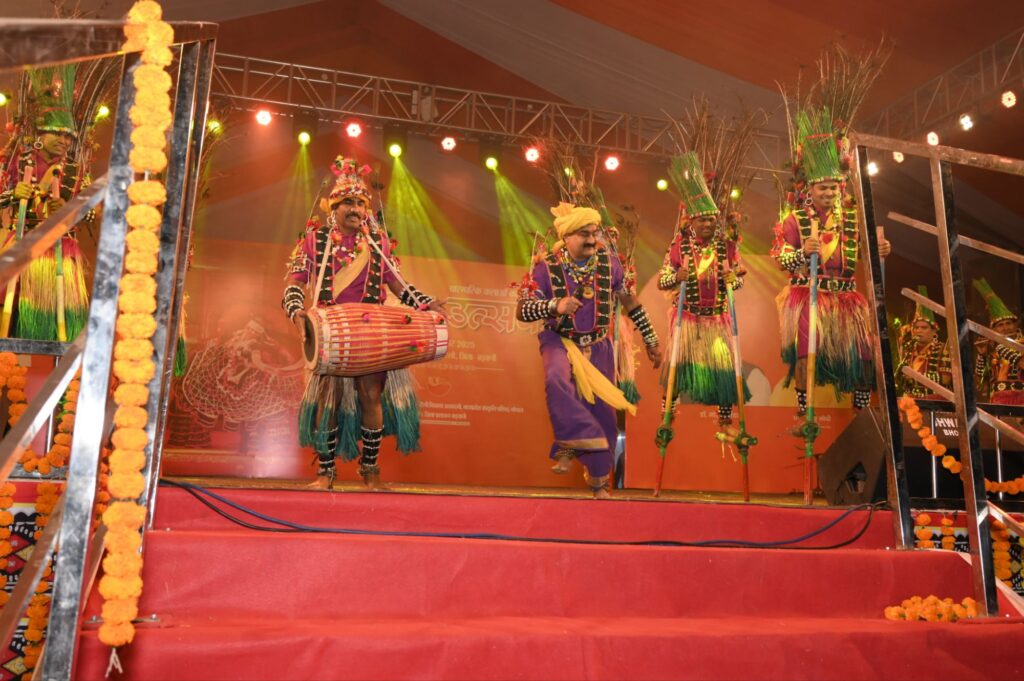 कौड़ियों, चीनी मिट्टी की मालाओं, पटसन वस्त्र, सिकबंध, मयूर पंख, पैरों में घुंघरू और रंगीन गेड़ियों से सुसज्जित कलाकारों ने जब मंच पर नृत्य प्रारंभ किया, तो पूरा महोत्सव स्थल तालियों की गड़गड़ाहट से गूंज उठा। अनिल कुमार गढ़ेवाल के कुशल नेतृत्व में दल ने अनुशासित एवं ऊर्जावान प्रस्तुति देकर दर्शकों को मंत्रमुग्ध कर दिया। गढ़ेवाल द्वारा गाया गया पारंपरिक गेड़ी गीत “काट ले हरियर बांसे जो भला” इंदौरवासियों को झूमने पर मजबूर कर गया।मुख्य मांदल वादक संजय रात्रे एवं मोहन डोंगरे के सशक्त वादन ने कार्यक्रम की गरिमा बढ़ाई, वहीं महेश नवरंग की बांसुरी की मधुर स्वर लहरियों पर दर्शक भावविभोर नजर आए। सौखी लाल कोसले ने हारमोनियम वादन किया, जबकि सहगायक के रूप में भरत वस्त्रकर एवं फागूलाल सूर्यवंशी ने सहभागिता निभाई।