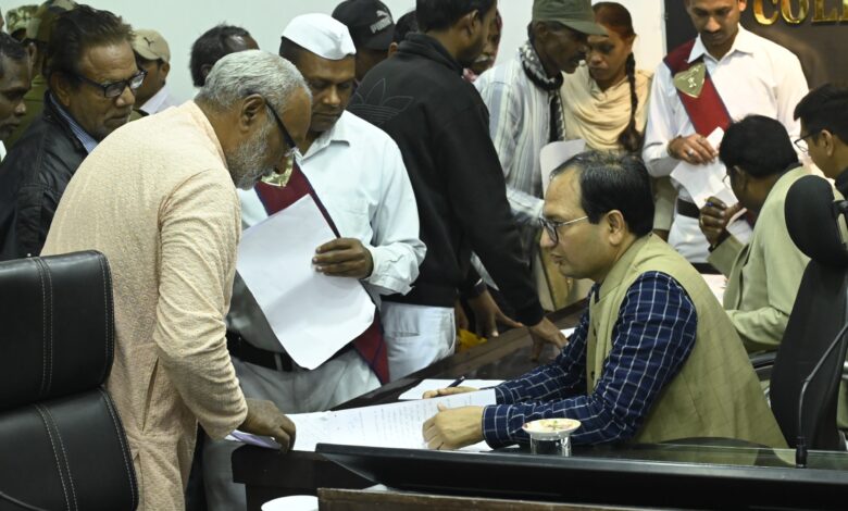 ख़बर 36 गढ़ न्यूज़ बिलासपुर, 13 जनवरी 2026/ कलेक्टर श्री संजय अग्रवाल ने साप्ताहिक जनदर्शन में आज दूर-दराज से पहुंचे ग्रामीणों की फरियाद सुनी। उन्होंने जनदर्शन में आए प्रत्येक व्यक्ति से उनका आवेदन लिया और आवश्यक कार्रवाई के लिए अधिकारियों को निर्देशित किया। लोगों ने जनदर्शन में व्यक्तिगत एवं सामुदायिक हित से जुड़े विभिन्न विषयों को लेकर समस्याओं के निराकरण के लिए आवेदन दिया। नगर निगम कमिश्नर श्री प्रकाश कुमार सर्वे और जिला पंचायत सीईओ श्री संदीप अग्रवाल ने भी लोगों की समस्याओं को सुना।