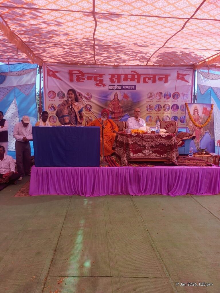 सम्मेलन में श्वेता खांडेकर समाज सेविका व सरपंच खम्हरियां ने कार्यक्रम को संबोधित करते हुए कहा कि हिंदुत्व सनातन से ही अपनी हम अपनी संस्कार संस्कृति को जान पाते है l इसी से हमारा जीवन सफल होती है और हम कैसे अच्छे जीवन जीते इसी से हम सिख पाते है l हमें किस तरह से उसे अपने जीवन में उतारना है l अपने जीवन को सफल बनाने के लिए उसको किस तरह से आत्मसात करना है हम भूल जाते हैं और हम किसी और अन्य के बताएं मार्ग पर चलने लगते हैं जो हमारे जीवन के लिए बिल्कुल भी अनुकूल स्थिति पैदा नहीं करता l हिंदू धर्म में मातृ शक्ति जननी है सृजन करता है और पालनहार है जिस तरह से हमारे धर्म ग्रंथो में मातृ शक्ति को माता का स्थान दिया गया है हम अपनी राष्ट्र को भी माता का के रूप में पूजते हैं l मातृ शक्ति को पूजनीय नहीं मानते हैं l हमें अपने हिंदू धर्म की श्रेष्ठता को बनाए रखने के लिए हम अपने हिंदू धर्म के संस्कारों को संस्कृति को अपने जीवन में उतरना चाहिए
